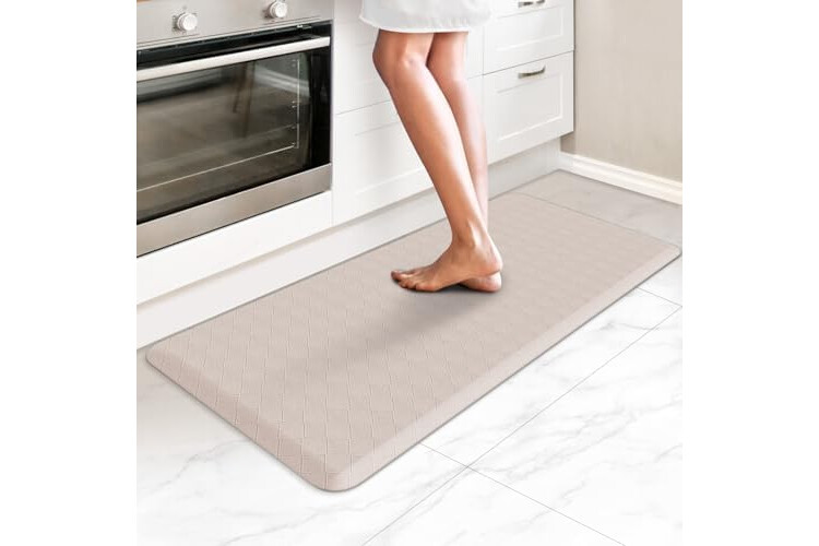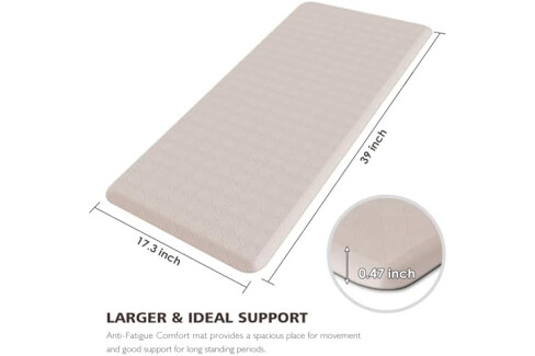 WATER RESISTANT:Our anti-fatigue mats are made of premium quality PVC material making it convenient to clean up and will not collect dirt;The material repels water,oils or stains and if anything spills,it makes an effortless clean up;Grid pattern surface never wrinkles and gives a premium texture without collecting debris