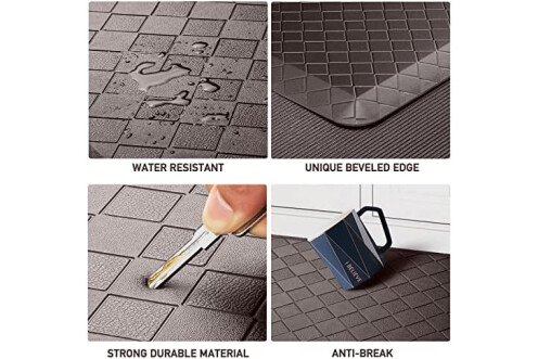 WATER RESISTANT:Our anti-fatigue mats are made of premium quality PVC material making it convenient to clean up and will not collect dirt;The material repels water,oils or stains and if anything spills,it makes an effortless clean up;Grid pattern surface never wrinkles and gives a premium texture without collecting debris