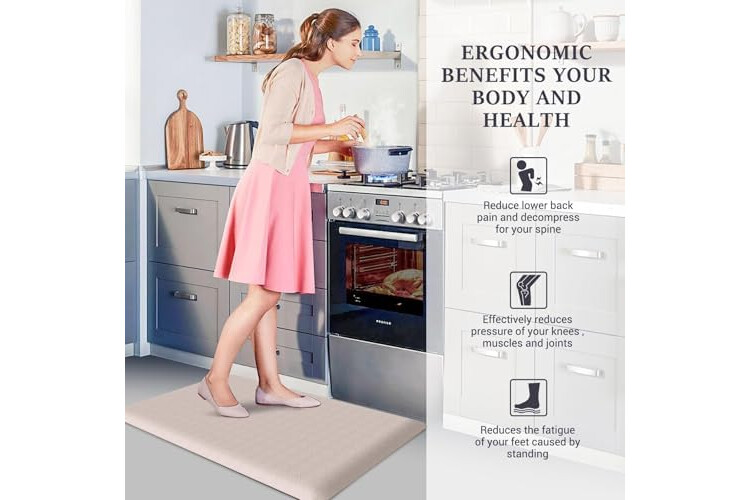 WATER RESISTANT:Our anti-fatigue mats are made of premium quality PVC material making it convenient to clean up and will not collect dirt;The material repels water,oils or stains and if anything spills,it makes an effortless clean up;Grid pattern surface never wrinkles and gives a premium texture without collecting debris