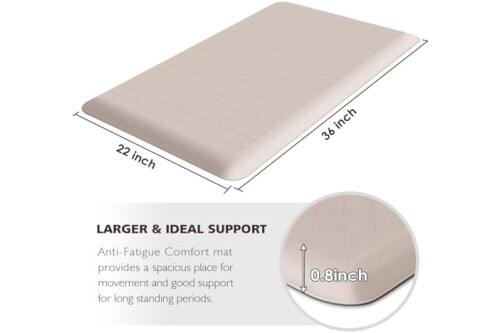 HappyTrends Kitchen Floor Mat - 4/5 Inch Thick Anti-Fatigue Kitchen Rug,Waterproof Non-Slip Kitchen Mats and Rugs Heavy Duty Ergonomic Comfort Rug for Kitchen,Office,Sink,Laundry,(22"x36", Khaki)