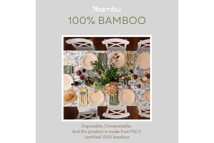 100% Natural - Bambu makes its products only from organic bamboo which is certified annually and is an abundant renewal resource. The perfect eco friendly alternative to paper plates or plastic plates and a step above other natural options. Biobased certified 100%