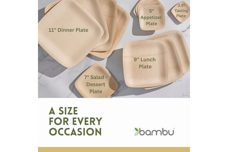 Convenient - Save the hassle and the cost of hauling and washing ceramic dishware. Bambu disposable bamboo plates are lightweight, strong enough to be reusable, and super convenient for all foods and all occasions. Consider using and reusing like many of our customers