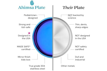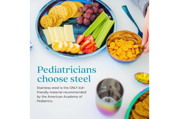 SAFEST MATERIAL, PEDIATRICIAN-DESIGNED: Created by a pediatrician and mom, our stainless steel dinner plates are MADE SAFE certified and free from BPA, PVC, phthalates, melamine, and lead-free. These non-toxic, plastic-free metal kids plates replace plastic, silicone, and bamboo with a safer, sustainable choice for everyday meals.