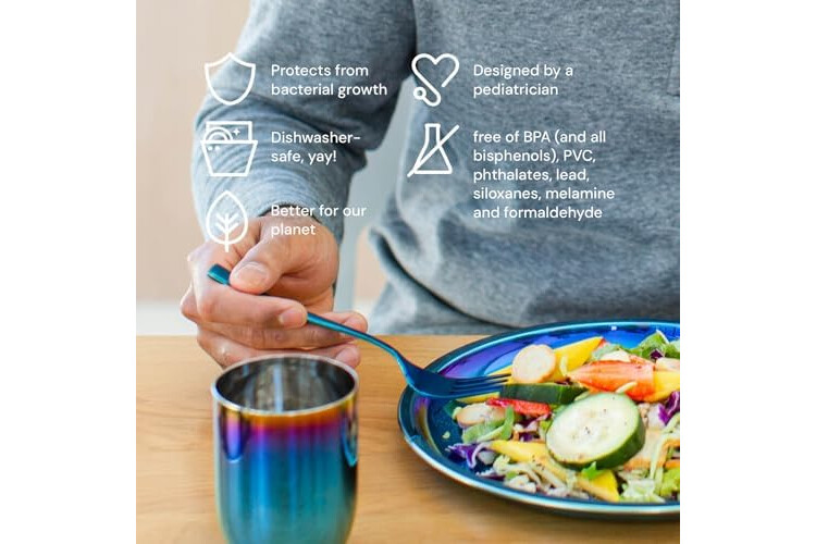 FUN BONDED COLOR: Each iridescent stainless steel kids plate features a safe titanium PVD finish — never paint or harmful coatings — for brilliant, fade-resistant color. This process bonds the hue directly to the metal, creating durable, easy to clean kids stainless steel plates that look beautiful for years.