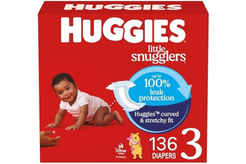 Huggies Size 3 Diapers, Little Snugglers Baby Diapers, Size 3 (16-28 lbs), 136 Count, Packaging May Vary