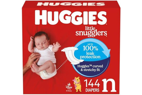 Huggies Size Newborn Diapers, Little Snugglers Baby Diapers, Size Newborn (up to 10 lbs), 144 Count, Packaging May Vary