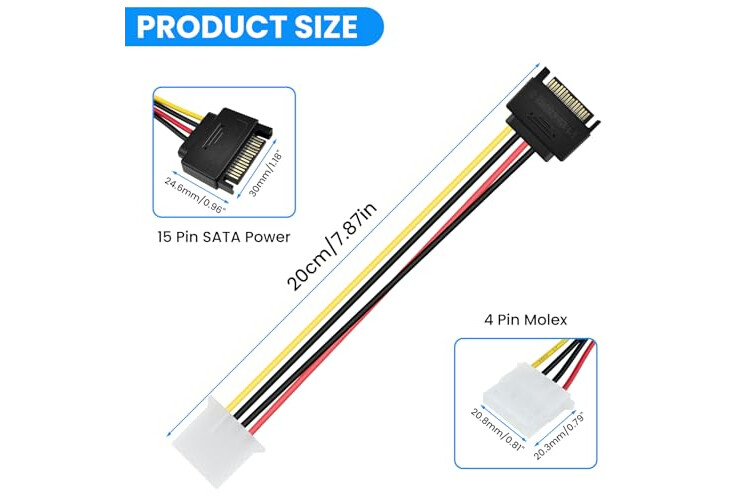 • Package Include: 3pcs SATA 15 Pin Male to IDE Molex 4 Pin Female Power Adapter Cable.