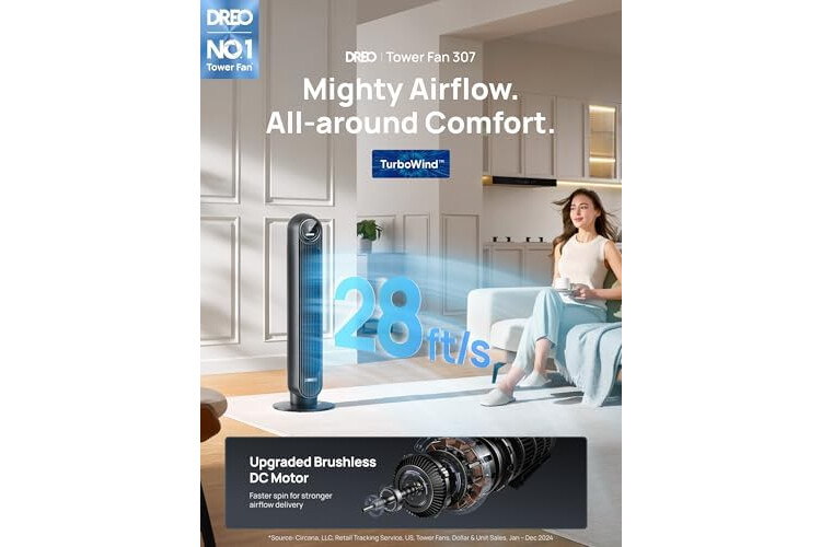 ๐๐จ๐ซ๐ ๐๐จ๐ฐ๐๐ซ๐๐ฎ๐ฅ ๐ฐ๐ข๐ญ๐ก ๐ฎ๐ฉ๐ ๐ซ๐๐๐๐ ๐๐ ๐ฆ๐จ๐ญ๐จ๐ซ: Thanks to DREO's upgraded brushless DC motor combined with TurboWind technology, the tower fan achieves faster spin to deliver stronger airflow, with wind speeds reaching up to 28ft/s and projecting up to 34ft.