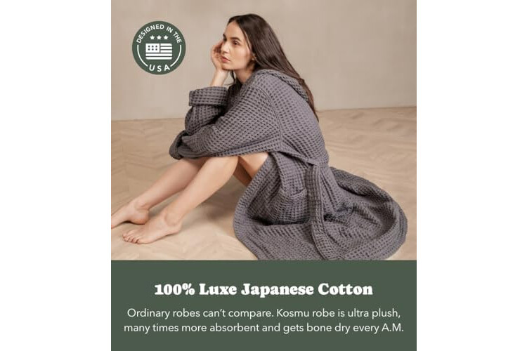 Luxury Organic Japanese Cotton Hotel & Spa Waffle Bathrobe for Men and Women (Hooded/Kimono)