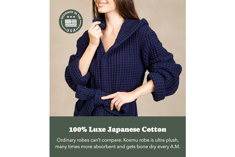 Luxury Organic Japanese Cotton Hotel & Spa Waffle Bathrobe for Men and Women (Hooded/Kimono)