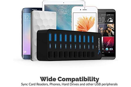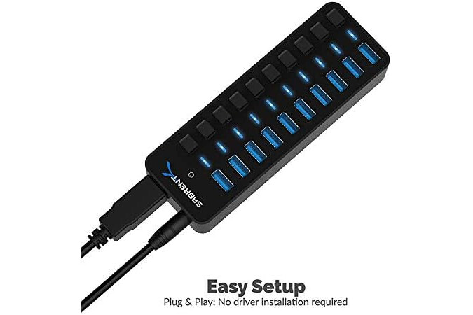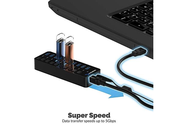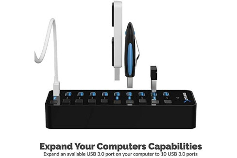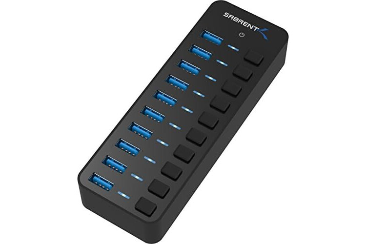 SABRENT 10-Port 60W USB 3.0 Hub with Individual Power Switches and LEDs, Includes 60W 12V/5A Power Adapter (HB-BU10)