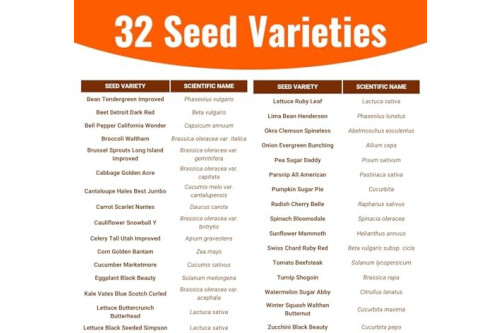 COMPLETE VEGETABLE GARDEN VARIETY PACK – Grow a thriving home garden with 32 popular vegetable seeds including Bean, Beet, Bell Pepper, Broccoli, Brussels Sprout, Cabbage, Cantaloupe, Carrot, Cauliflower, Celery, Corn, Cucumber, Eggplant, Kale, Lettuce (3 types), Lima Bean, Okra, Onion, Pea, Parsnip, Pumpkin, Radish, Spinach, Sunflower, Swiss Chard, Tomato, Turnip, Watermelon, Zucchini. A diverse mix perfect for fresh meals, backyard gardens, and sustainable growing.