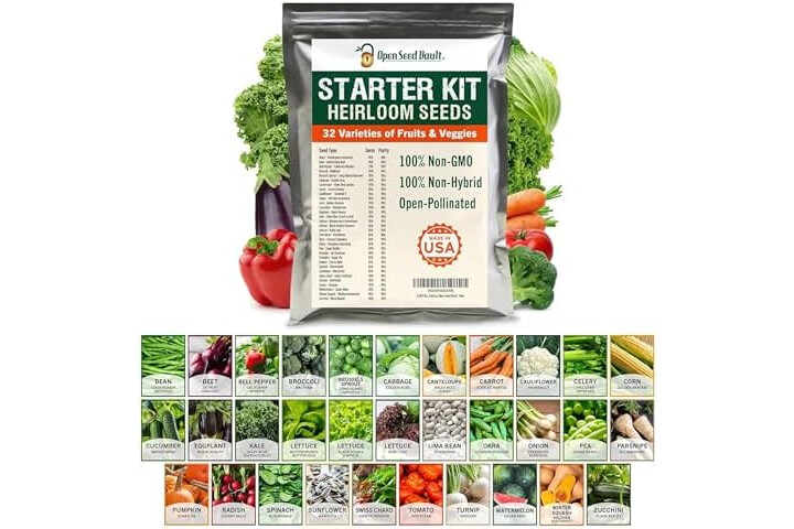 Open Seed Vault |15,000 Heirloom Seeds | 32 Seed Types | Survival Seeds | 2026 Season | Non GMO Vegetable and Fruit Seeds | Planting Outdoor & Indoor Garden