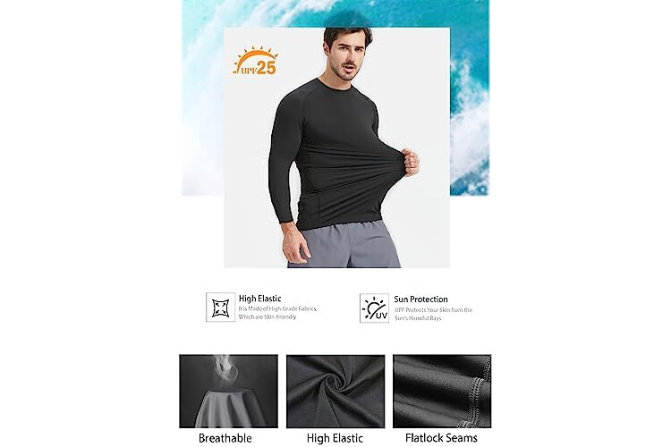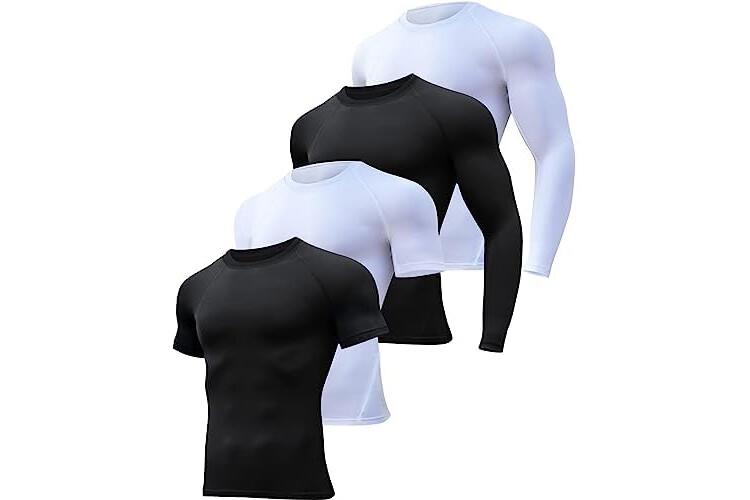 HOPLYNN 4/5 Pack Workout Compression Shirts Men Long/Short Sleeve Rash Guard Athletic Undershirt Gear T Shirt for Sports