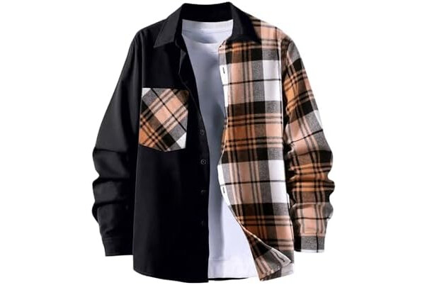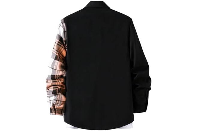 OYOANGLE Men's Colorblock Plaid Print Button Down Long Sleeve Pocket Collared Shirts Top