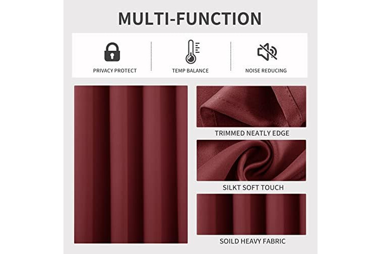 Versatile Size & Style Options: These living room curtains are available in 6 sizes (from 52"W x 54"L to 52"W x 108" L) and 9 stylish colors. Perfectly match any bedroom or living room decor. Includes sophisticated options like Burgundy Black.