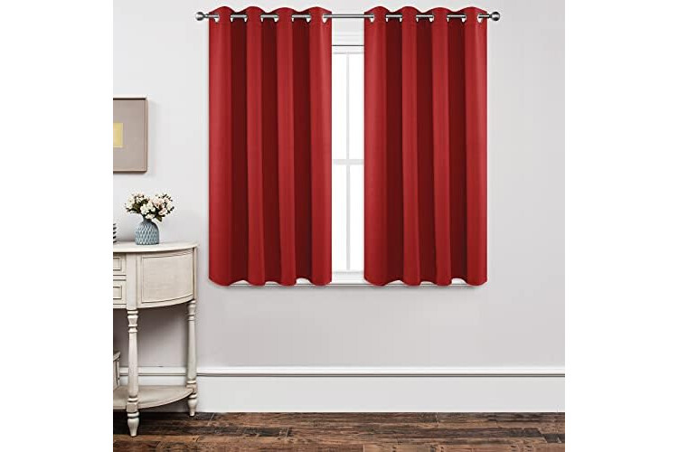 Joydeco Blackout Curtains 54 Inch Length 2 Panels Set, Thermal Insulated Long Curtains& Drapes 2 Burg, Room Darkening Grommet Drapes for Living Room Bedroom Window (W52 x L54 Inch, Red)
