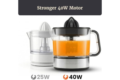 MORE POWER THAN STANDARD 25W MODELS: Equipped with a stronger 40W motor and auto-reversing extraction for faster juice yield vs. typical 25W citrus juicers. Designed for smooth, efficient home juicing.