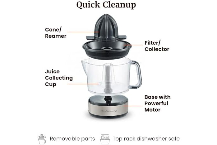 AUTO-REVERSING REAMER FOR BETTER EXTRACTION: Dual-direction rotation helps extract more juice from oranges, lemons, limes, and grapefruit with effortless push-down activation.