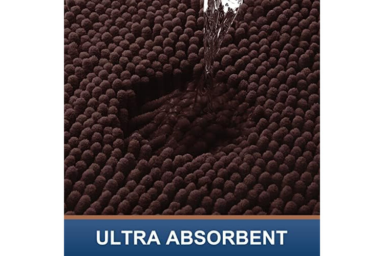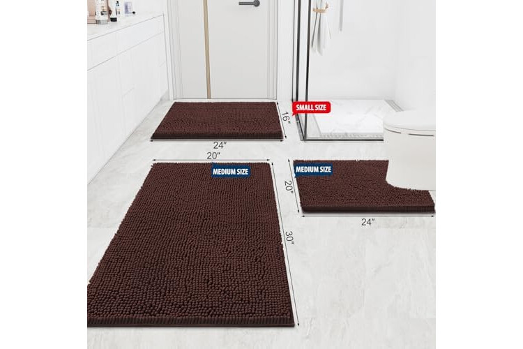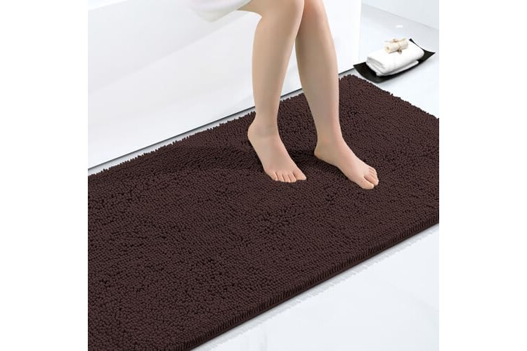 Smiry Luxury Chenille Bathroom Rugs 40x32, Extra Soft and Absorbent Shaggy Bath Mat, Machine Washable, Non-Slip Plush Carpet Runner for Tub, Shower, and Floor, Home Decor Accessories, Brown