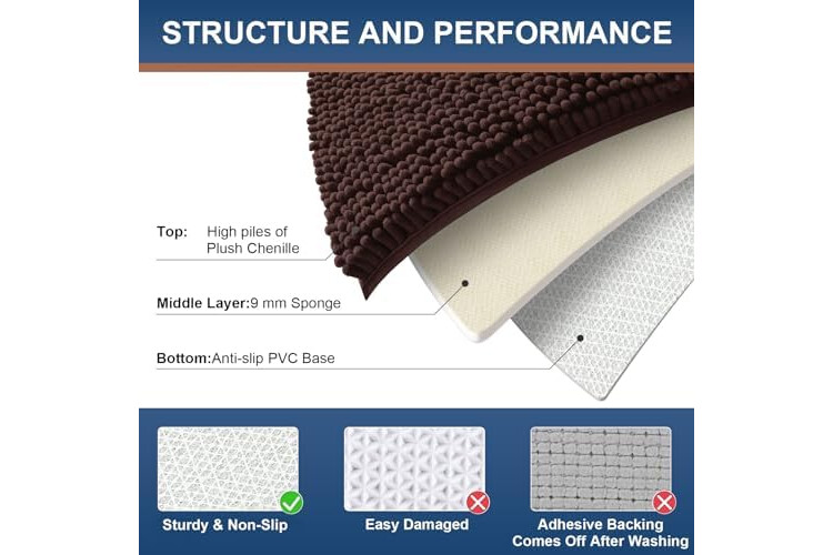[Non-Slip Backing] Our bath rugs feature a non-slip backing made from good quality mesh PVC, providing a secure grip that avoid shifting and skidding. Important: Place on CLEAN DRY FLAT FLOOR ONLY to avoid slipping. Keep the rug's bottom dry at all times.