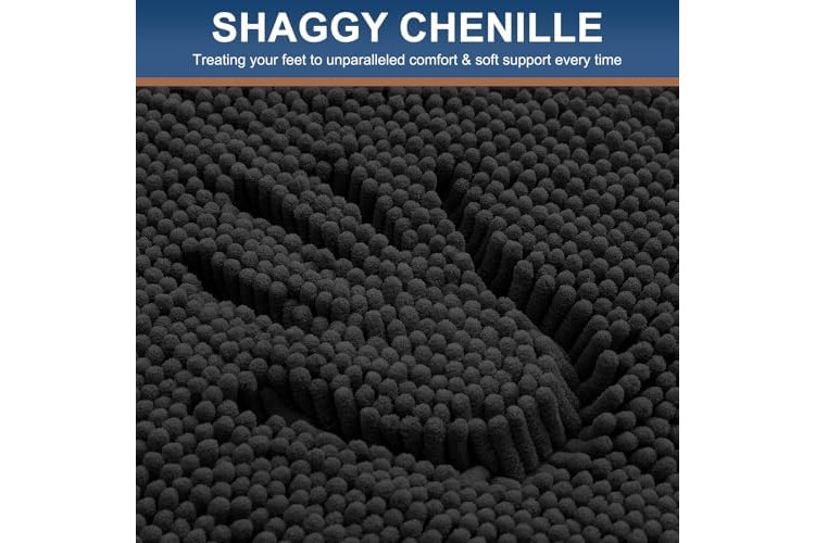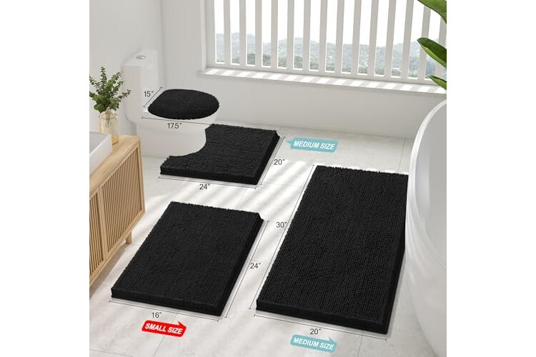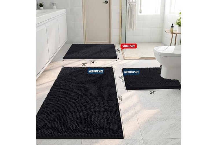 Smiry Luxury Chenille Bathroom Rugs 44x24, Extra Soft and Absorbent Shaggy Bath Mat, Machine Washable, Non-Slip Plush Carpet Runner for Tub, Shower, and Floor, Home Decor Accessories, Black