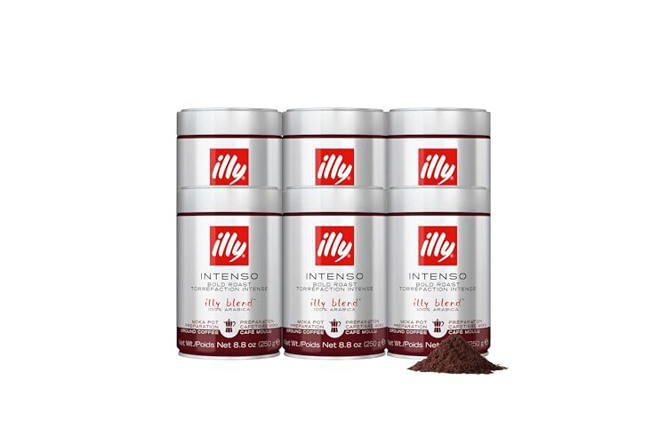illy Ground Moka Coffee, Intenso Dark Roast, 100% Arabica, Premium Italian Coffee, Pre-Ground for Moka Pot or Stovetop Brewing, 8.8oz, 6 Pack