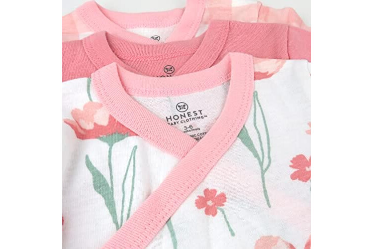 HonestBaby Baby 3-pack Long Sleeve Side-snap Kimono Bodysuits Organic Cotton for Infant Baby Boys, Girls, Unisex
