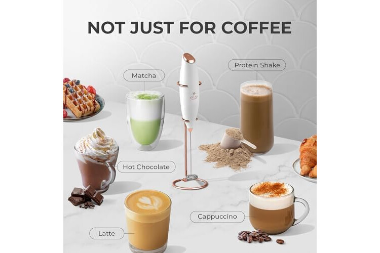 MATCHA WHISKING, COFFEE & MORE: Works better than a manual matcha whisk and far better than a fork for coffee. Perfect for mixing protein powders, smoothies, or powdered drinks with no extra container or blender. This milk frother handheld is your mini mixer for shakes, smoothies, and creative beverage recipes.