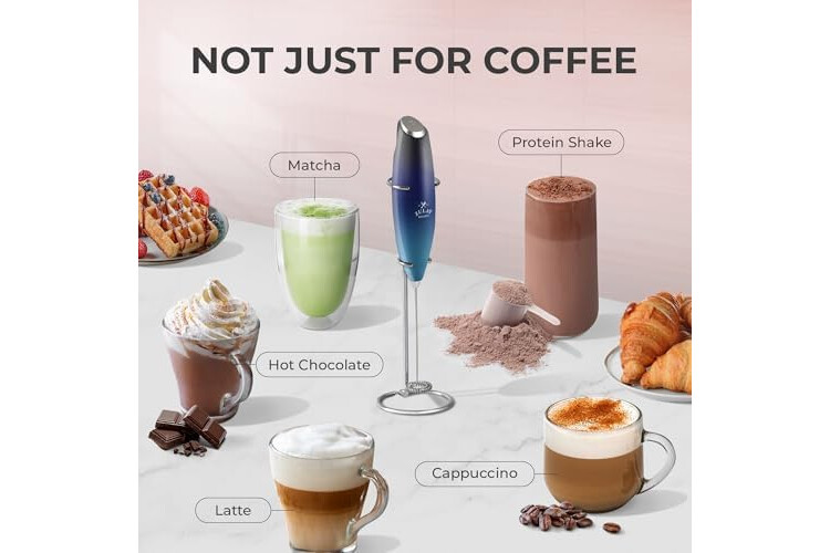 MATCHA WHISKING, COFFEE & MORE: Works better than a manual matcha whisk and far better than a fork for coffee. Perfect for mixing protein powders, smoothies, or powdered drinks with no extra container or blender. This milk frother handheld is your mini mixer for shakes, smoothies, and creative beverage recipes.