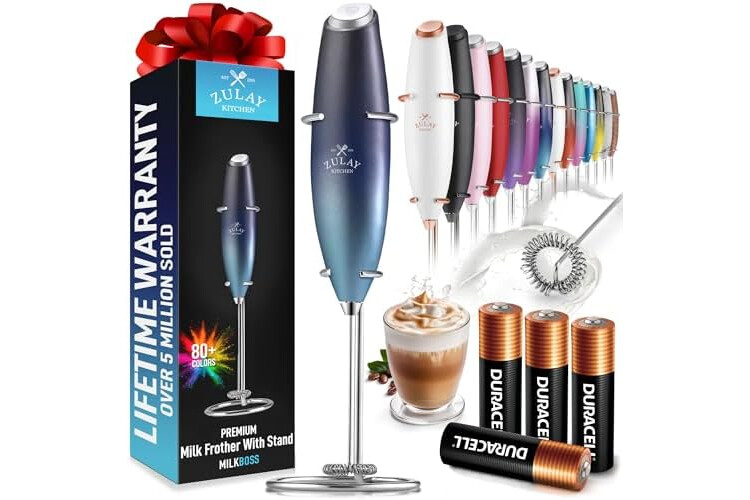 PROVEN AND TRUSTED QUALITY: Made with high-quality materials, this coffee frother handheld works on all types of milk—whole, almond, soy, cashew, or cream. Backed by the Zulay Lifetime Guarantee, it won’t rust or break.
