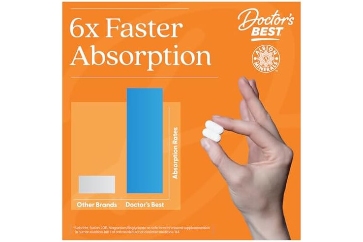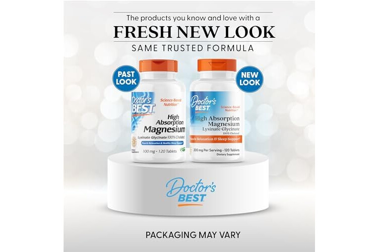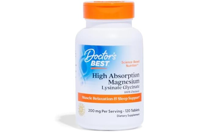 Doctor’s Best High Absorption Magnesium Glycinate Lysinate Supplement - 100% Chelated for Maximum Absorption - Magnesium for Sleep and Muscle Relaxation - 200 Mg Per Serving - 120 Tablets