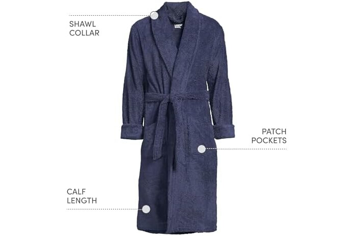 Lands' End Men's Full-Length Turkish Cotton Terry Bathrobe – 55" Length | Plush, Absorbent, 2 Pockets, Spa Comfort