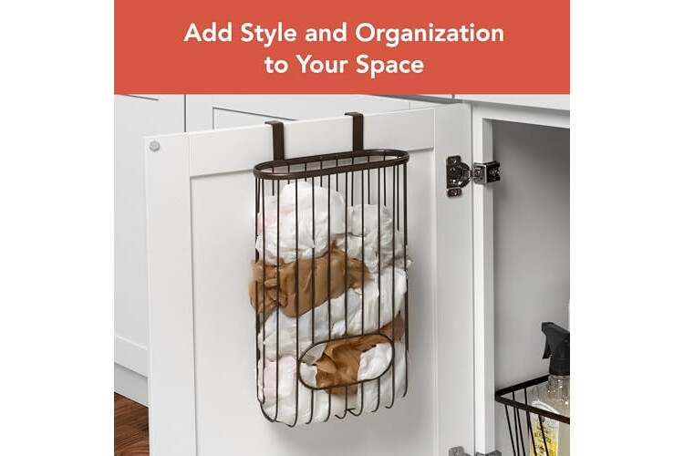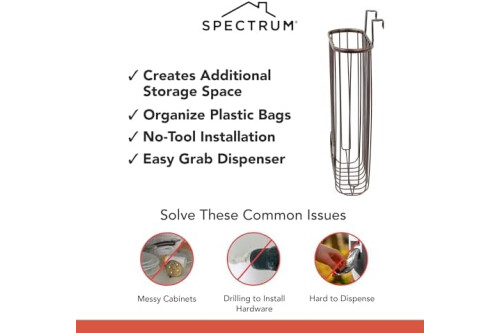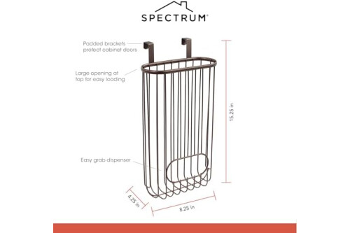 Spectrum Diversified Ashley Over-The-Cabinet Plastic Grocery Bag Dispenser, Plastic Bag Holder for Kitchen Storage & Organization, Under Sink Organizer for Recycling Grocery Bags