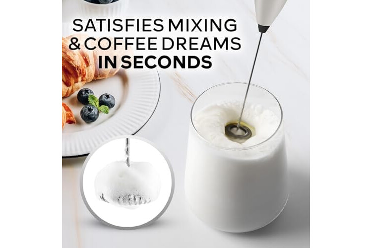 MAKE RICH, CREAMY FROTH IN SECONDS: Create café-quality foam for coffee, lattes, cappuccinos, hot chocolate, and matcha with this handheld frother wand. Perfect for milk, cream, or non-dairy alternatives.