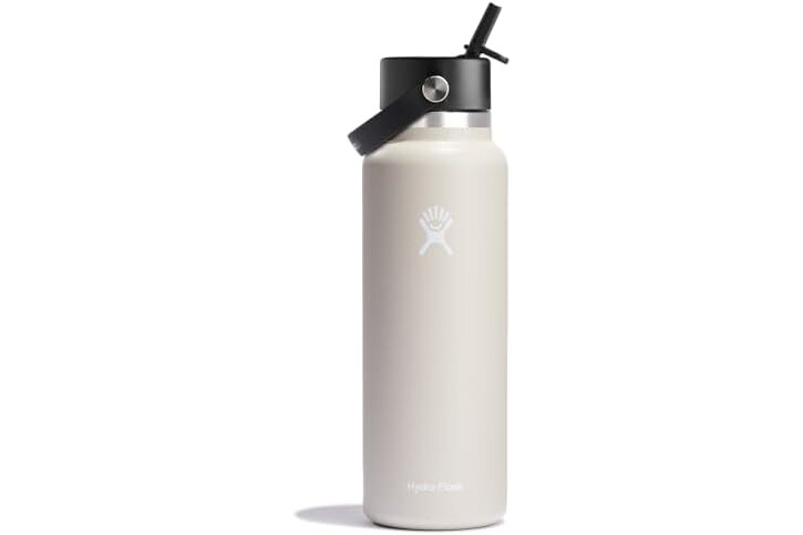 40 OZ OAT TAN BOTTLE: Flip it and sip it with the Hydro Flask Wide Mouth insulated water bottle with closeable straw cap. With a comfortable, flexible handle, the leakproof straw cap is easy to open and close, for on-demand hydration. Double-wall insulation keeps drinks cold up to 24 hours.