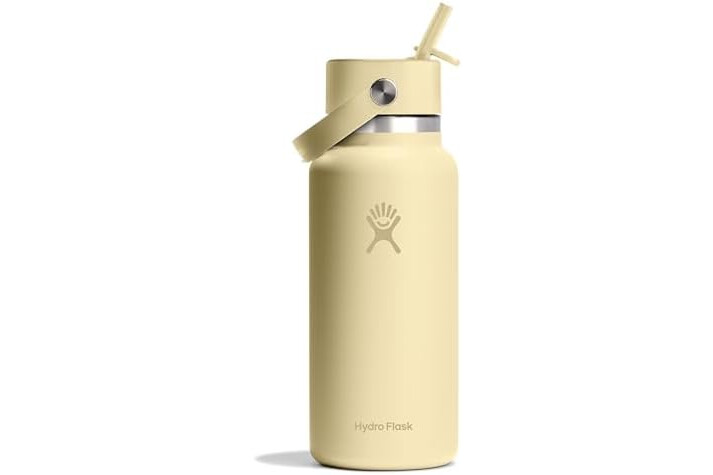 THE BEST BOTTLE: A 32 oz Wide Mouth insulated water bottle with Hydro Flask's leakproof Flex Straw Cap—easy to fill, easy to drink. Open it up, add your ice, and flip to sip. The insulated stainless steel keeps it cold for up to 24 hours.