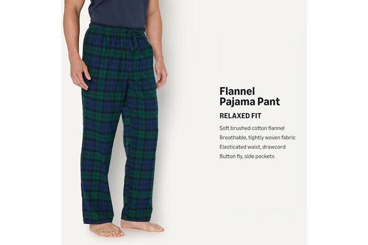 Amazon Essentials Men's Breathable Flannel Pajama Pant, Relaxed Fit, Drawstring, Cotton