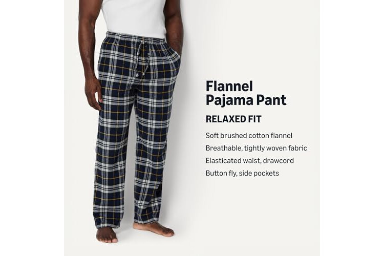 Amazon Essentials Men's Breathable Flannel Pajama Pant, Relaxed Fit, Drawstring, Cotton