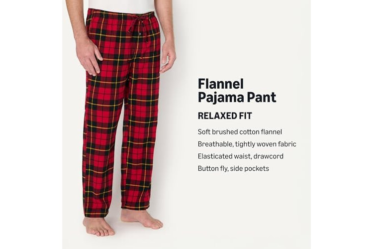 Amazon Essentials Men's Breathable Flannel Pajama Pant, Relaxed Fit, Drawstring, Cotton