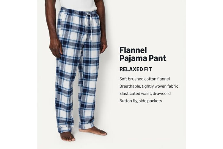 Amazon Essentials Men's Breathable Flannel Pajama Pant, Relaxed Fit, Drawstring, Cotton