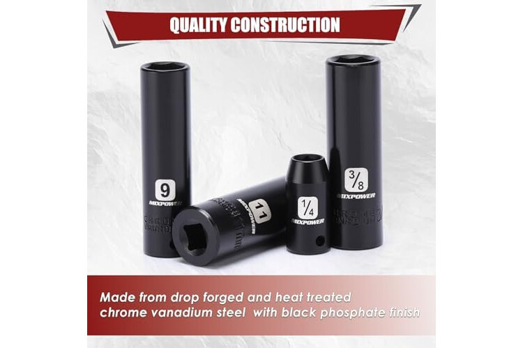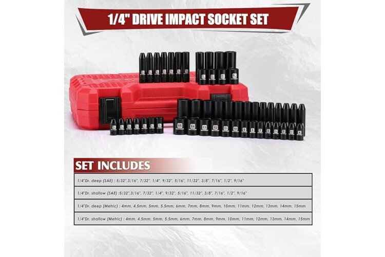MIXPOWER 50 Pieces 1/4" Dr. Impact Socket Set, CR-V, 6 Point, SAE/Metric, 5/32 Inch - 9/16 Inch, 4mm - 15mm, Shallow/Deep