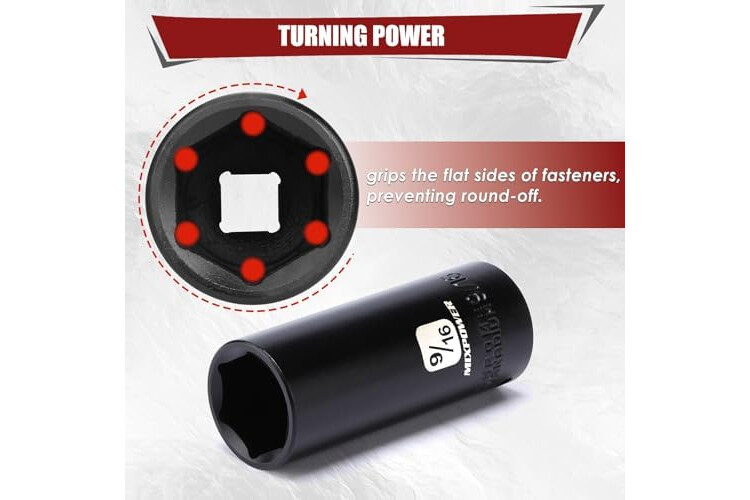 【High-torque】Radius corner, 6-point drive design turns the flat sides of the fastener and provide maximum torque, while not peeling and damaging the corners.
