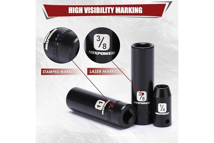 【Dual Size Markings】High-contrast laser etched with high-visibility markings and hard stamped with size labels, ensure permanent socket identification.