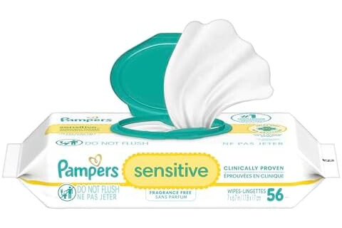 Pampers Sensitive Baby Wipes, Water Based, Hypoallergenic and Unscented, 1 Flip-Top (56 Wipes Total)