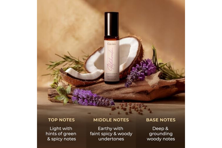 Gya Labs Patchouli Essential Oil Roll On - 0.34 Fl Oz - Travel Size Roller for Camping, Skin, Aromatherapy Relief, Convenience