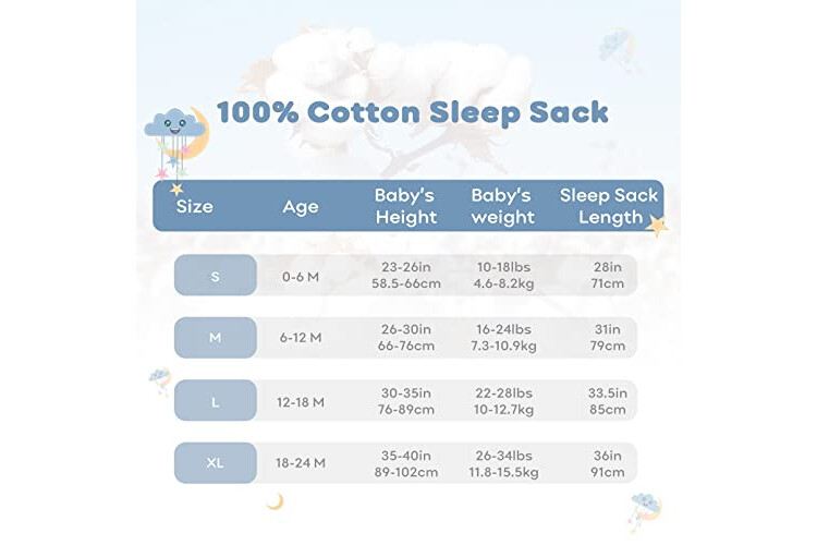 • Roomy Places: The arm and neck openings sized for a perfect fit, the leg room carefully sized for baby to move around freely, but cannot be kicked off, so baby stays warm all night. The sleeping sack is great for promoting healthy hip development.