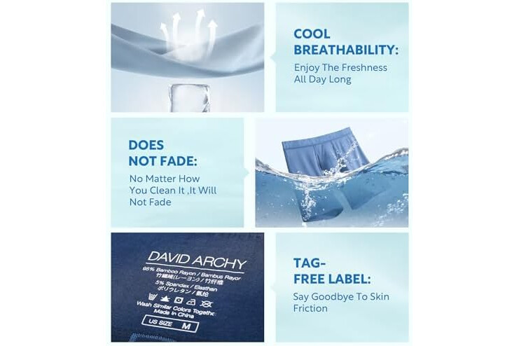 DAVID ARCHY Mens Underwear Boxer Briefs Breathable Soft Moisture-Wicking with Fly Underwear for Men Multipack
