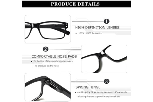 SPRING HINGES: Mens reading glasses also have features such as spring hinges that make them comfortable to wear for long periods of time