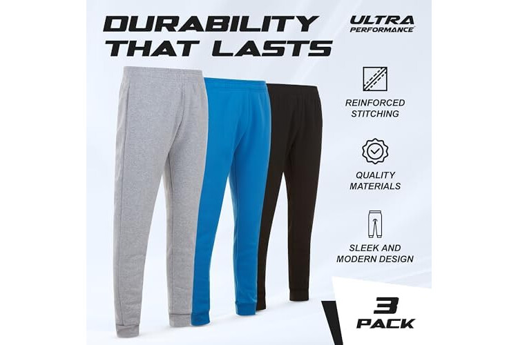 Ultra Performance 3 Pack Mens Joggers Mens Athletic Sweatpants with Pockets for Men, Small - 3X